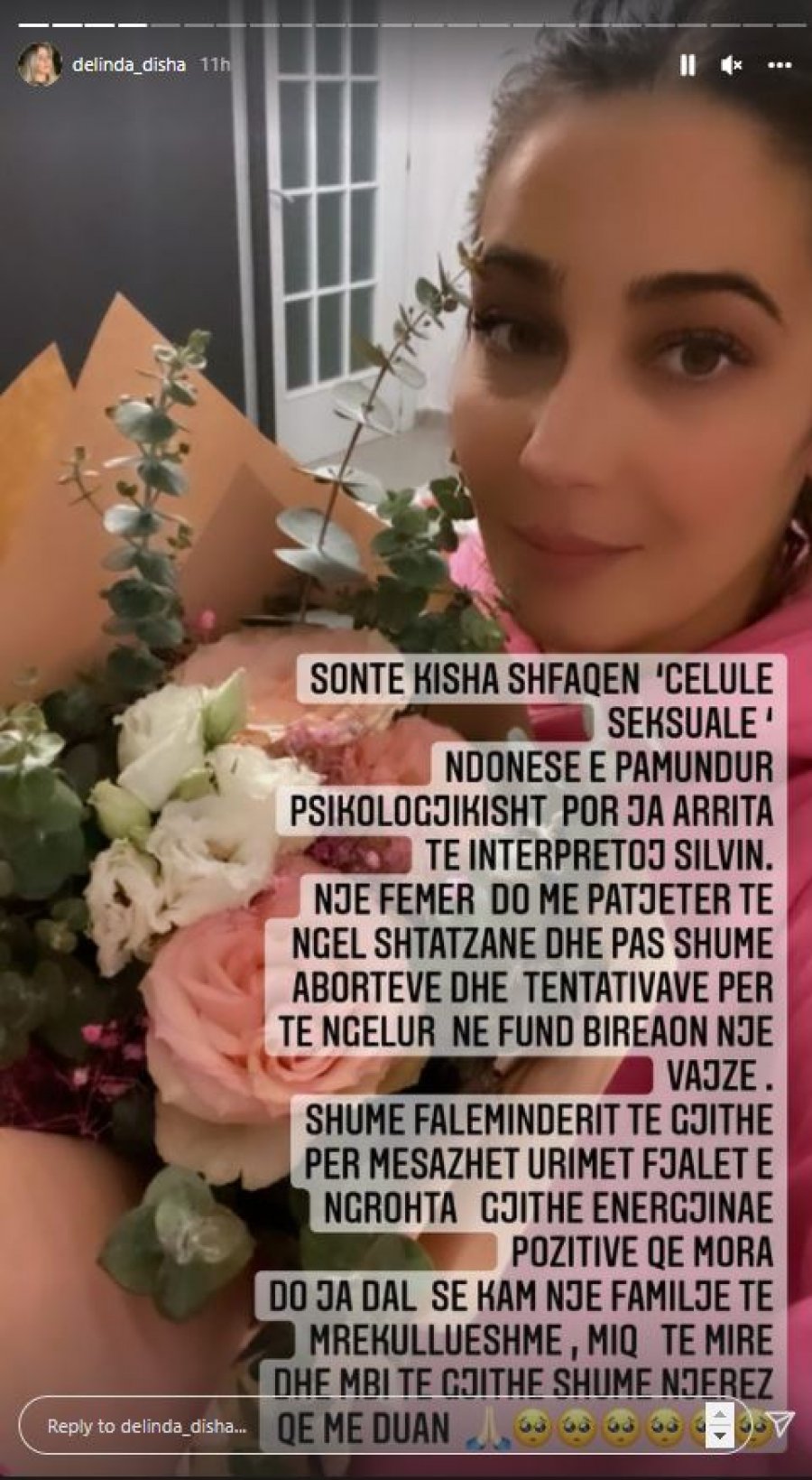Gjithë energjinë pozitive që mora do ja dal se kam një familje të mrekullueshme, miq të mirë dhe mbi të gjitha njerëz që më duan”, shkruan Delinda.