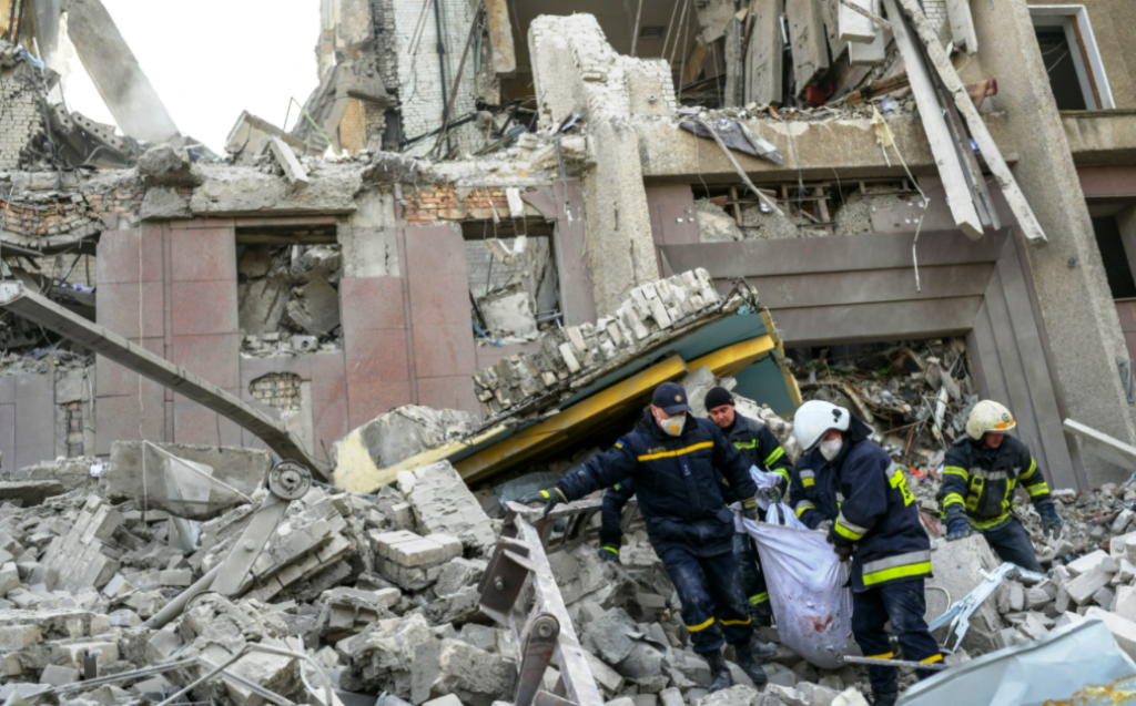 Shërbimi Shtetëror i Emergjencave të Ukrainës tha se greva goditi ndërtesën nëntëkatëshe të martën në mëngjes rreth orës 8:45 të mëngjesit me orën lokale.