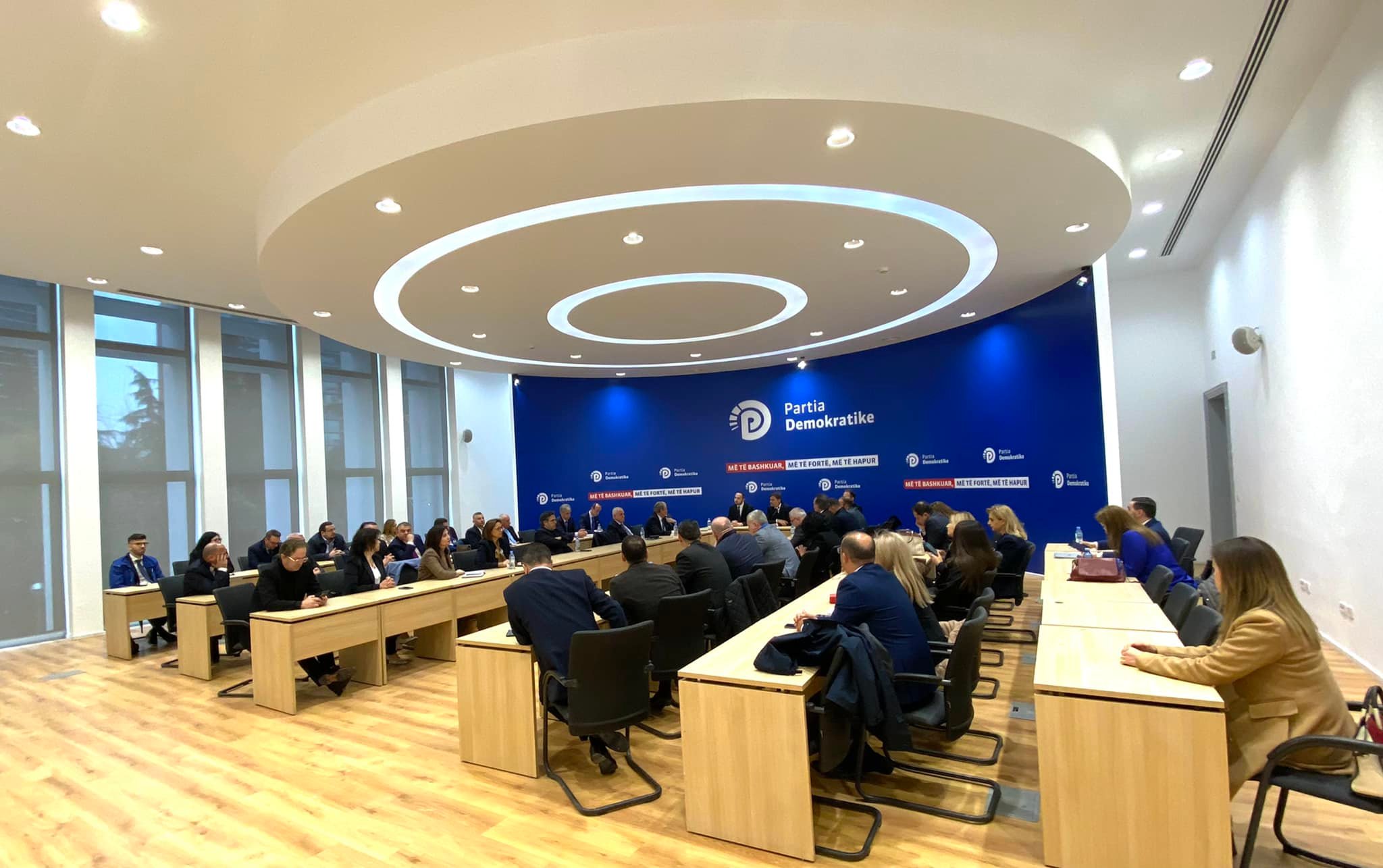 Ka nisur mbledhja e grupit parlamentar të Partisë Demokratike, në selinë blu. Pas 6 muajsh, në këtë mbledhje merr pjesë edhe Sali Berisha, lideri historik i demokratëve, i përjashtuar nga ish-kryetari Lulzim Basha.