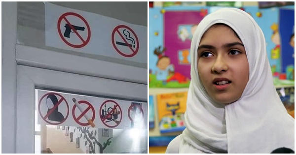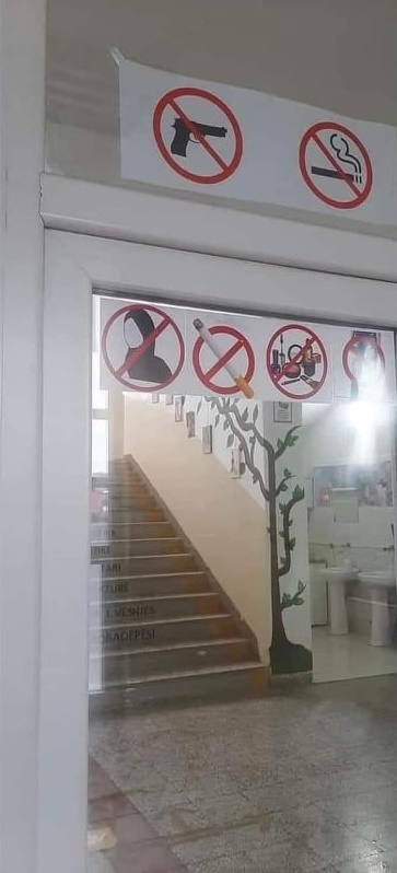 Ngjarja ka ndodhur në shkollën e mesme teknike “Nexhmedin Nixha” ku sapo hyn në korridor bie në sy tabela e madhe me rreth të kuq që ndalon përdorimin e mbulesës njësoj sikurse ndalon armët, alkoolin apo duhanin.