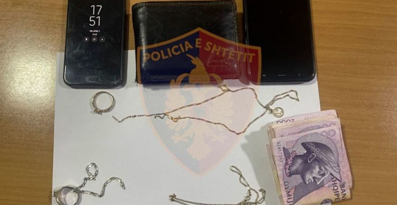 Në cilësinë e provës materiale u sekuestruan një portofol me një shumë parash, disa bizhuteri, dy telefona dhe 1 automjet.