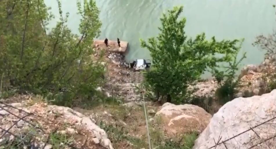 Forcat policore dhe të zjarrfikëses po punojnë për nxjerrjen e makinës nga ujërat e liqenit.