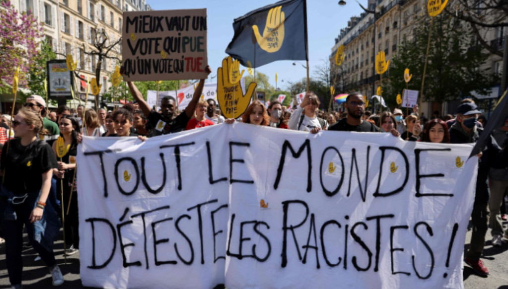 Në qendër të Parisit, mijëra njerëz u mblodhën duke brohoritur slogane kundër të djathtës ekstreme dhe duke paralajmëruar trazira demokratike nëse Le Pen do të fitonte. Në një pankartë shkruhej: