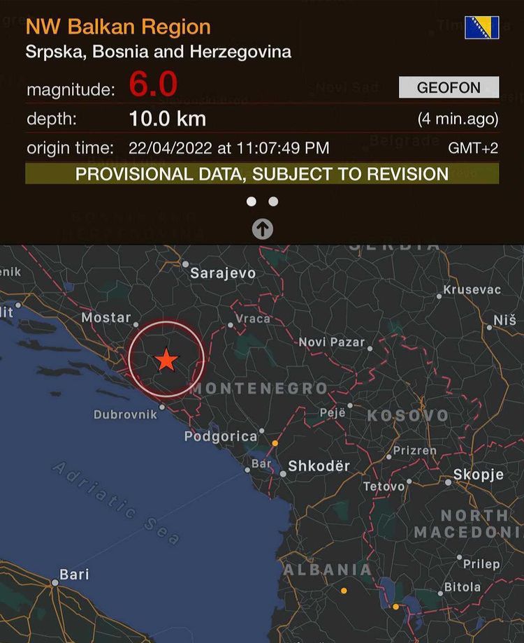 Tërmeti që tronditi sonte Shqipërinë, Kosovën, Maqedoninë dhe Malin e Zi, e po ashtu u ndje dhe në disa zona të Greqisë, e kishte epiqendrën në Bosnjë Hercegovinë.