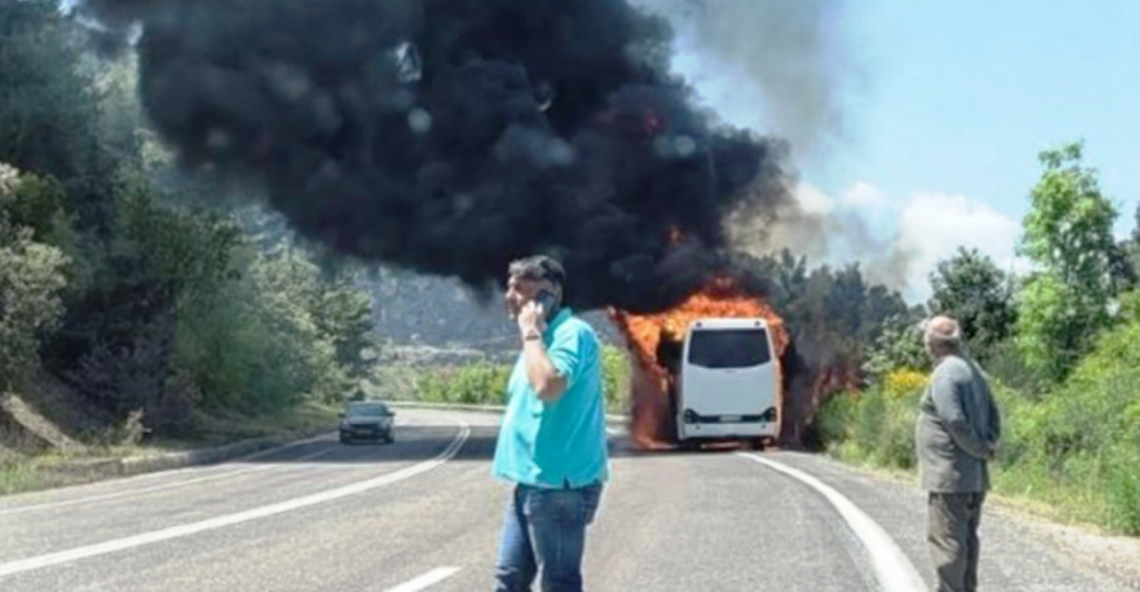Shoferi i autobusit ka kuptuar se diçka nuk po shkonte mirë me autobusin, e për pasojë fëmijët kanë zbritur të gjithë ndërsa flakët e mëdha po përfshinin mjetin.