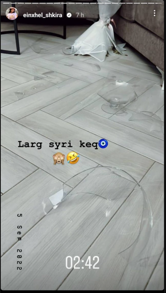 Ajo ka publikuar një “Instastory” ku bëri me dije se pas mesnatës, se i është thyer një vazo që mbante një buqetë me lule. Por duket se incidentin e ka percëptuar ndryshe.