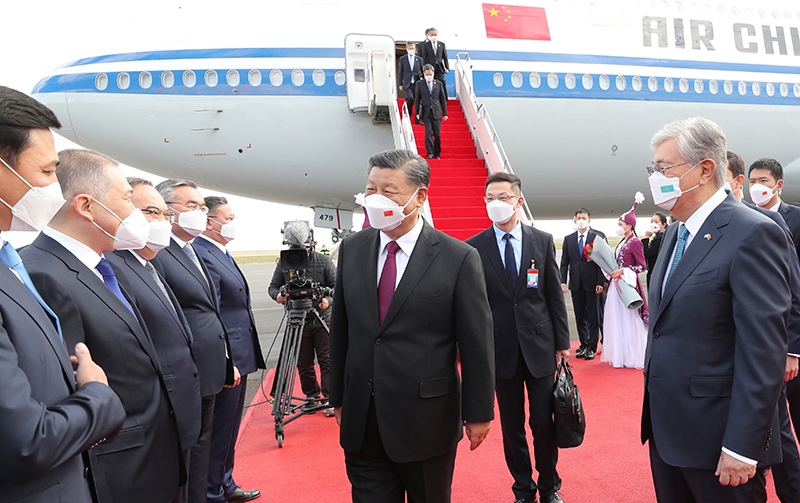 Presidenti i Kinës Xi Jinping mbërriti të mërkurën pasdite sipas kohës vendore në Aeroportin Ndërkombëtar "Nursultan Nazarbajev" të kryeqytetit të Kazakistanit, duke filluar vizitën e tij shtetërore në Kazakistan.