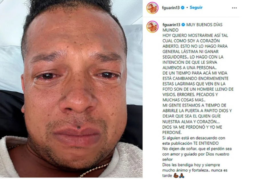 Mesfushori Fredy Guarín, ish-lojtari i Interit ndër të tjera, ka publikuar një foto duke qarë në llogarinë e tij zyrtare në Instagram. Në mbishkrim, futbollisti, i cili ka qenë pa klub që kur u largua nga Millonarios më 2021, u shpreh duke thënë se ishte një njeri "plot me vese, gabime dhe mëkate":