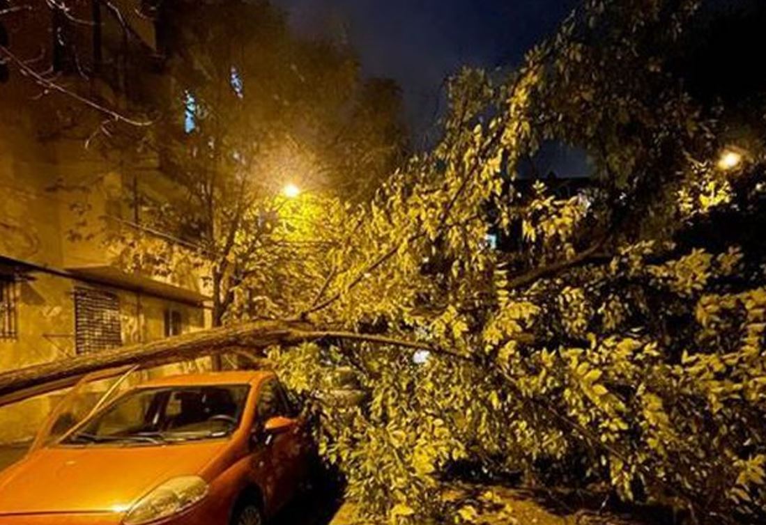 Tiranë- Një pemë u rrëzua gjatë natës në Tiranë duke dëmtuar rëndë disa mjete që ndodheshin poshtë saj.
