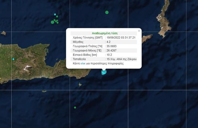 GREQI- Kreta nuk ka qetësi. Një tërmet me magnitudë 4.3 ballë të shkallës Rihter ka goditur mëngjesin e sotëm ishullin. Epiqendra e lëkundjeve sizmike ndodhej 15 km larg në juglindje të Zakros.