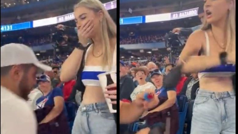 Një i ri në SHBA ka vendosur t’i bëjë surprizë të dashurës së tij. Ai e mori atë në një ndeshje të ekipit të tij të preferuar dhe pasi e puthi, u ul në një gju për t’i bërë propozimin tradicional për martesë. I riu nxorri unazën nga xhepi dhe kur hapi kutinë, vajza mbeti e shtangur kur pa se çfarë kishte në kuti.