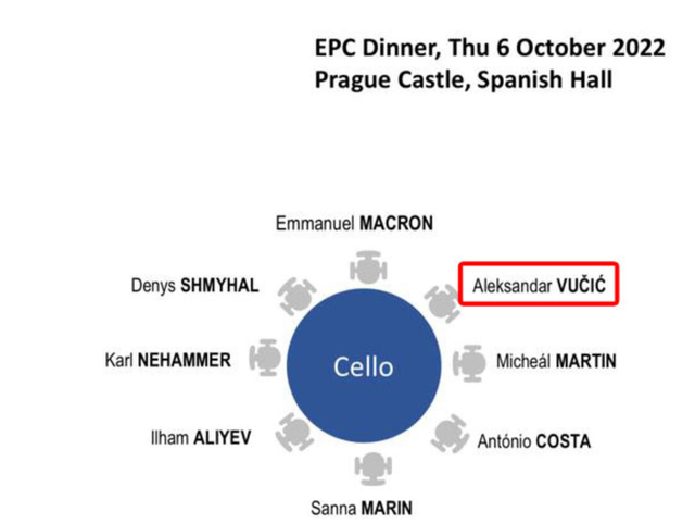 Në foton e renditjes së karrigeve, shihet se Macron është në krye të tavolinës dhe presidenti serb është pranë tij. Në tryezë me presidentin Vuçiç do të jenë kancelari austriak Karl Nehammer dhe shtetarët më të rëndësishëm.