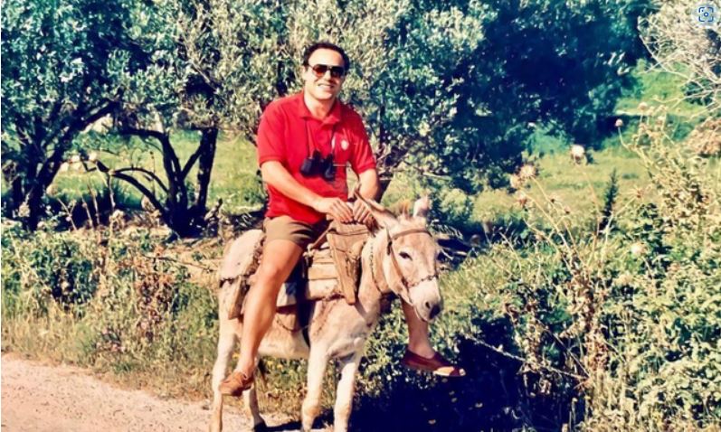 Në imazh shihet Fevziu mbi një gomar, duke përshkuar rrugën Vlorë-Orikum. Një pamje vërtet vintage.