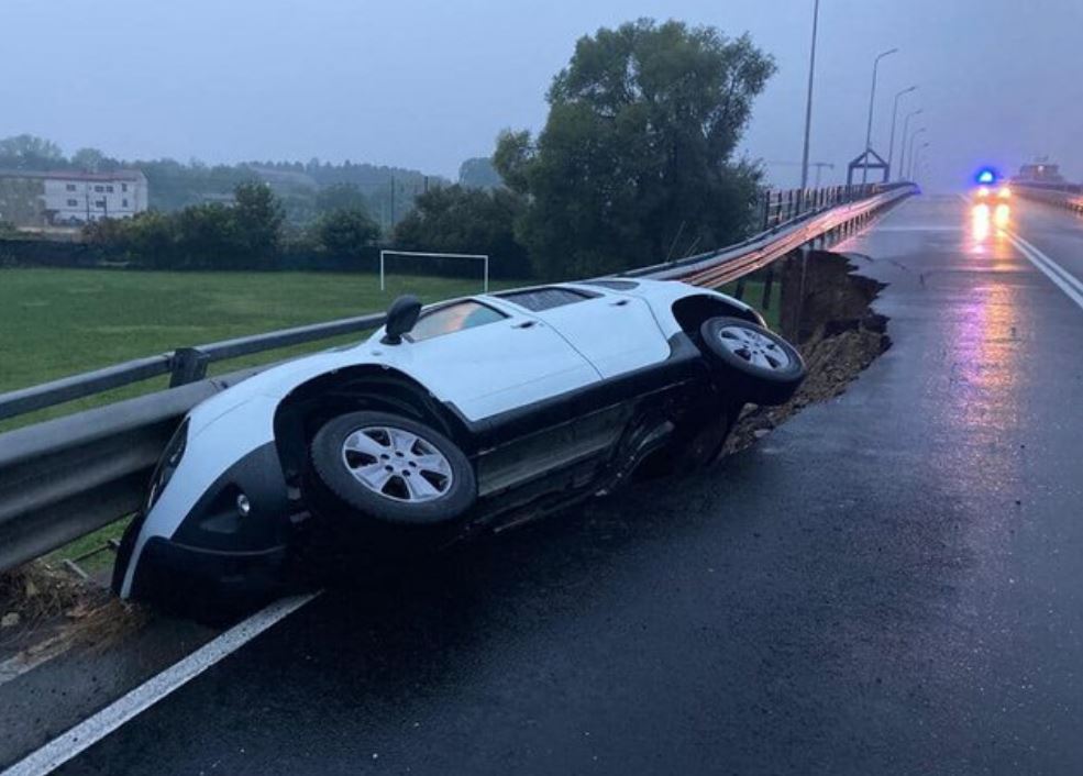 Një humnerë e madhe është hapur në korsinë e majtë në dalje.