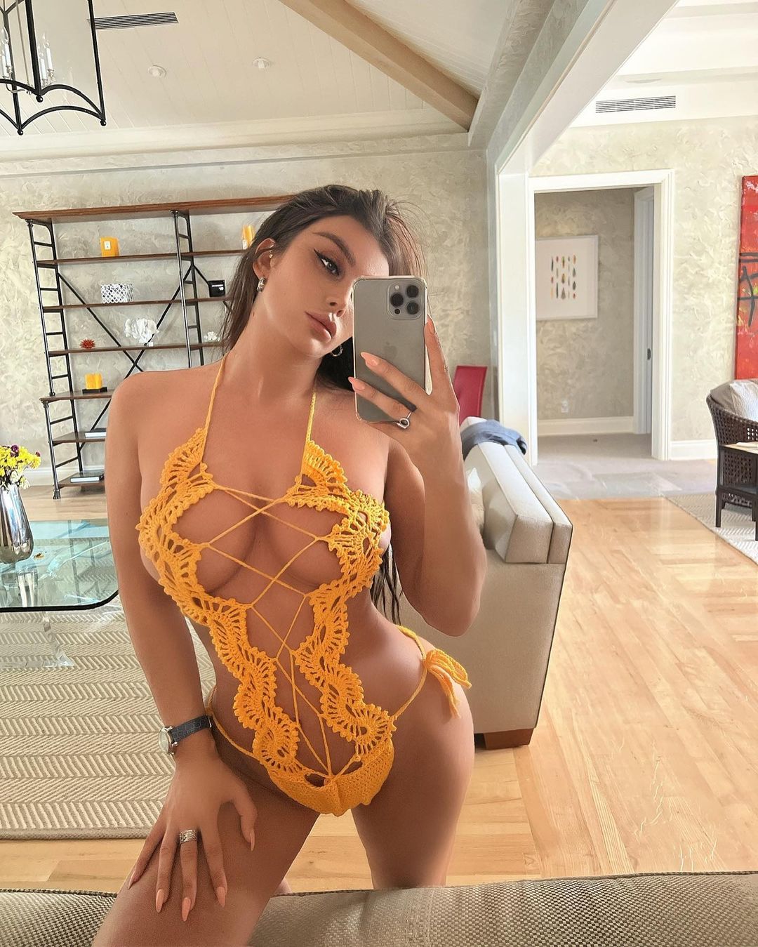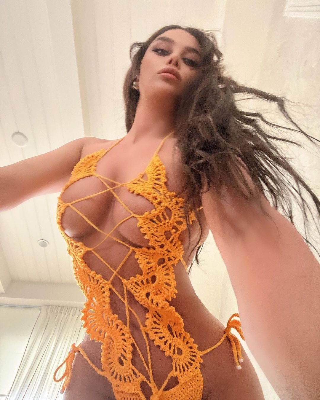 Tani, ajo ka nxjerrë bollshëm hiret e saj duke e mbuluar tërë trupin me një dantellë,që, siç shihni fotot e publikuara prej saj, arrijnë të mbulojnë pak, fare pak.