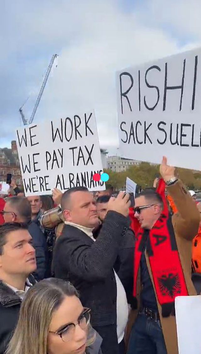 Londër- Siç kishin njoftuar, shqiptarët me banim në Britani u hodhën sot në një protestë për të kundërshtuar retorikën diskriminuese të Sekretares së Punëve të Brendshme Suela Braverman ndaj shqiptarëve në Angli, ku mes të tjerash tha se janë kriminelë dhe propozoi që të dërgohen në Ruandë, këta të fundit janë ngritur sot në protestë.