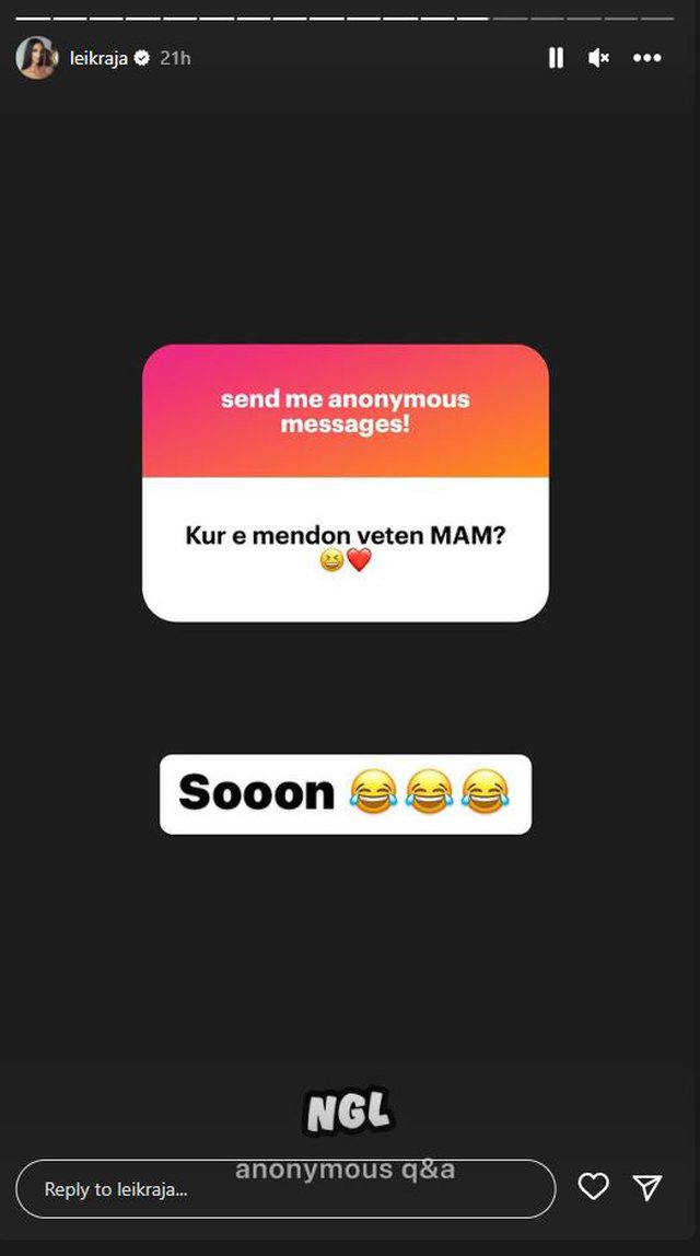 "Kur e mendon veten mami?", i ka shkruar ndjekësi. "Së shpejti", i është përgjigjur Lei duke i befasuar të gjithë. Më tej ajo ka treguar se dëshiron të ketë dy fëmijë maksimumi.
