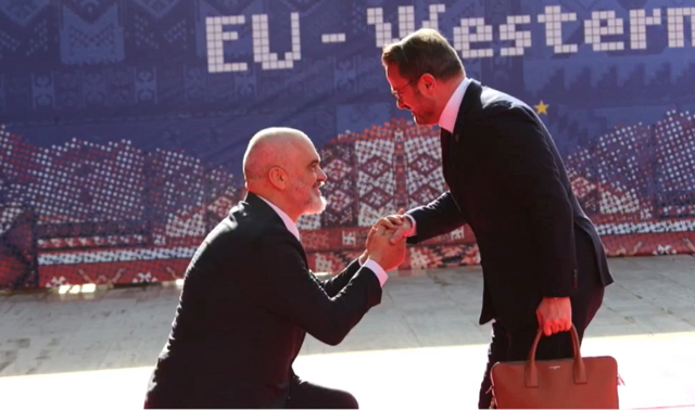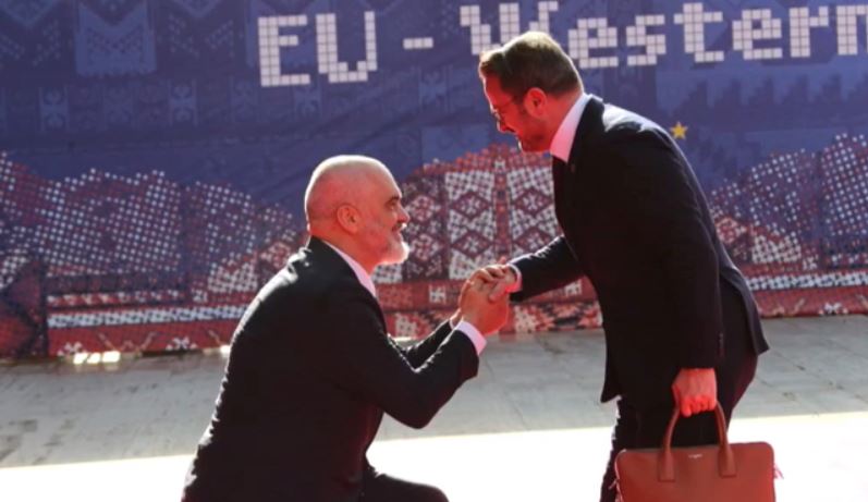 Kryeministri i Luksemburgut, Xavier Bettel e ka bërë kryeministrin Edi Rama që të ulet në gjunjë