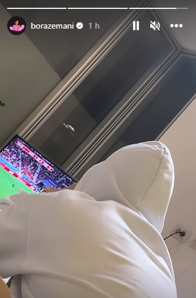 Moderatorja Bora Zemani ka publikuar në rrjete sociale një video të Donaldit i cili shihet shumë i përqëndruar duke parë ndeshjen. “Më thuaj diçka të bukur”, i thotë Bora.