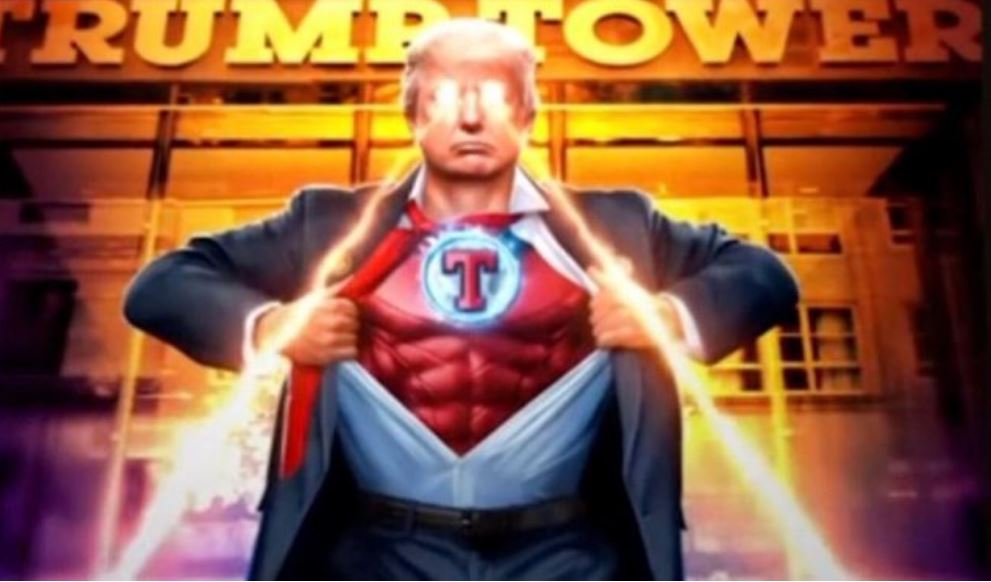 Në pak sekonda të videos, Trump shkruan "Amerika ka nevojë për një superhero", e më pas shfaqet si një superhero me një kostum ku dominon shkronja "T" dhe nga i cili i dalin lazer nga sytë.