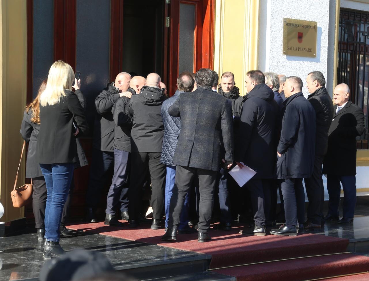 “O çuna hapeni mo rrugën”, dëgjohet teksa thotë Tomor Alizoti, ndërsa demokratët pohojnë se punonjësit e Gardës po përdoren dhe po shkelin të drejtat ligjore të deputetëve.