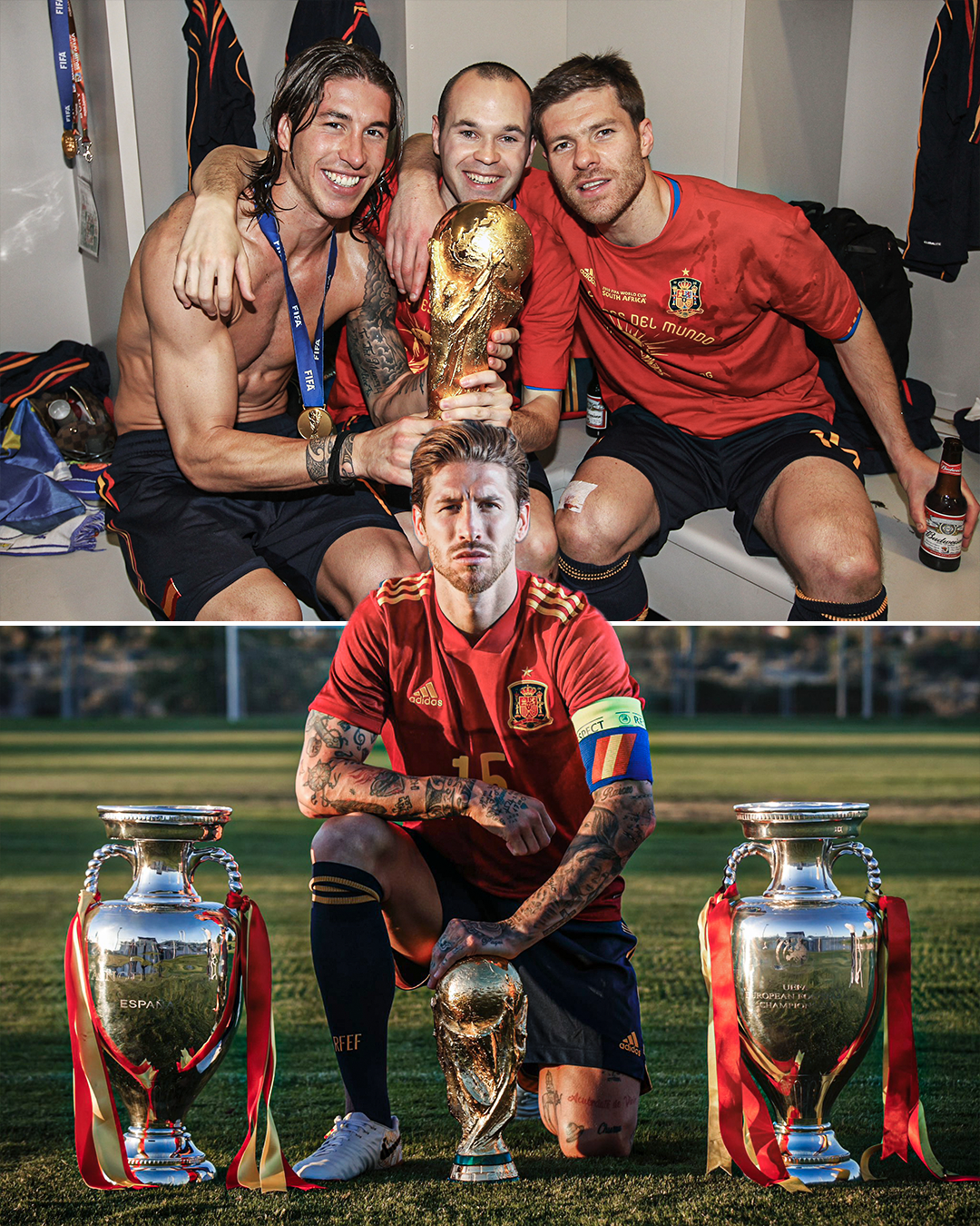 Pilar Rubio shoqëroi mesazhin me një imazh të Sergio Ramos së bashku me tre trofetë e shkëlqyer që lojtari sevillian fitoi me kombëtaren spanjolle: Kupën e Botës dhe dy Kampionate Europiane.