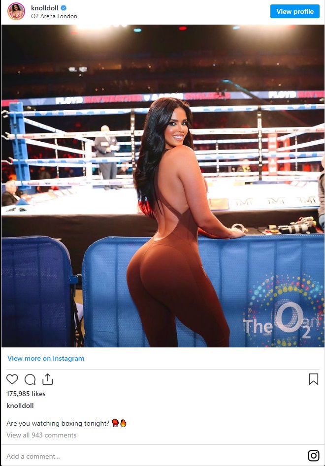 Pasi Floyd Mayweather Jr u argëtua në dyluftimin e tij kundër ish-luftëtarit të arteve marciale Aaron Chalmers, i cili zgjati 8 raunde në arenën O2 në Londër, Ivana Knoll tregoi veshjen sensuale me të cilën mbështeti boksierin amerikan.