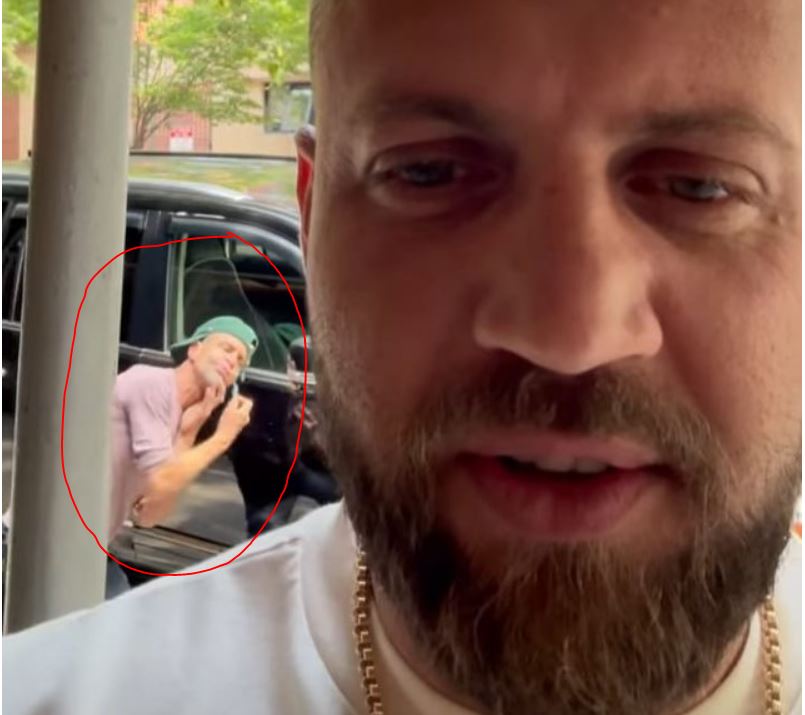 Ai ka publikuar një video, ku tregon një burrë, në dukje amerikan, i cili është duke u rruar në mes të rrugës dhe duke përdorur pasqyrën e makinës së Luizit.