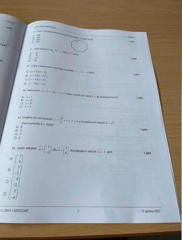 Vetëm 20 minuta pas nisjes së porvimit, në rrjetet sociale janë shfaqur foto të provimit, të cilin nxënësit do duhet të zgjidhin.