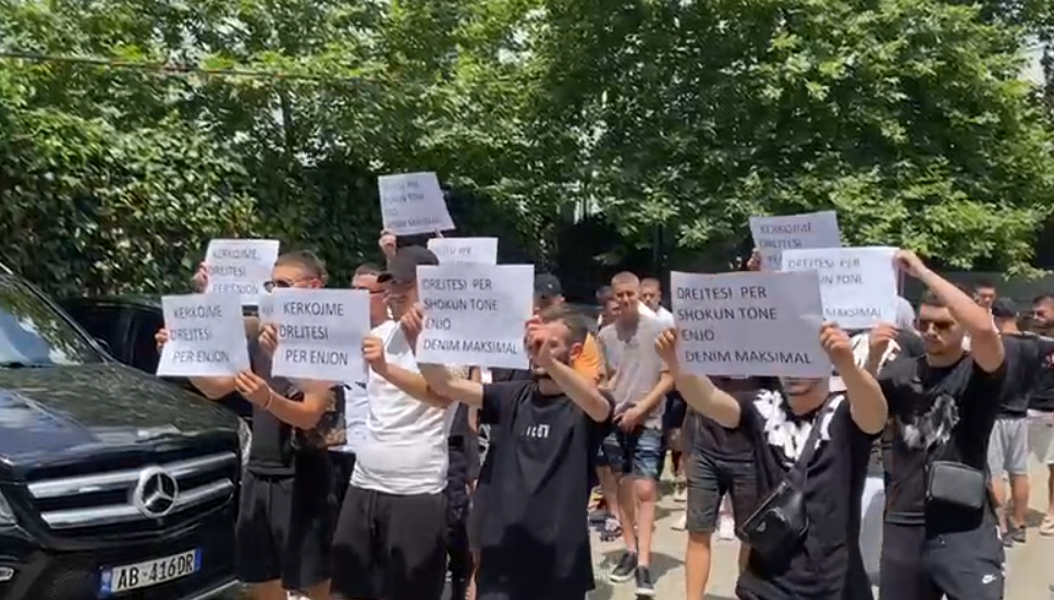 Shokët e Enjo Saliajt që vdiq në një aksident në Tiranë, protestojnë para Gjykatës së Tiranës, të cilës i kërkojnë mos lirimin nga qelia të shoferit që shkaktoi aksidentin.
