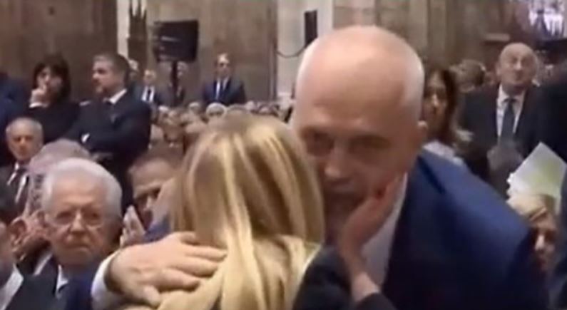 ITALI- Një momenti i veçantë është vënë re mes kryeministrit Edi Rama dhe homologes italiane Giorgia Meloni gjatë ceremonisë së varrimit të Silvio Berlusconit. Teksa Meloni futet në Katedralen e Milanos, ka shkëmbyer një përshëndetje të ngrohtë me kryeministrin Edi Rama, të cilin e ka përkëdhelur edhe me dashamirësi.