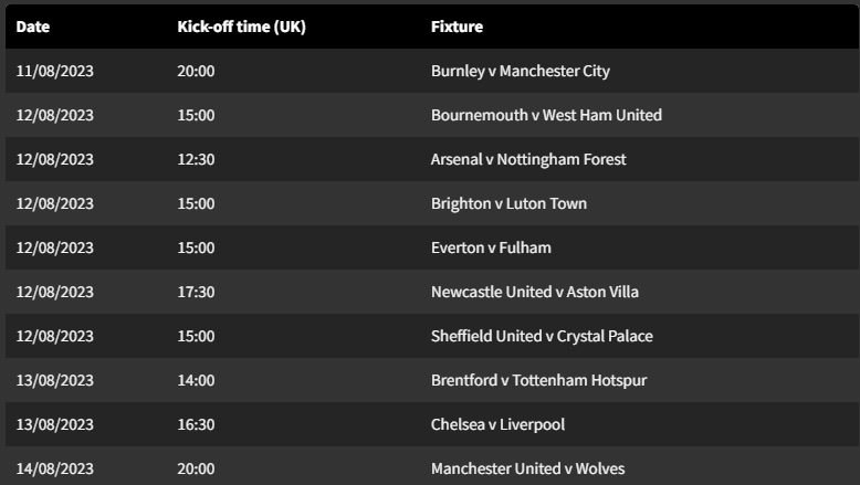 Në anën tjetër të tabelës, të tria klubet e promovuara në Premier League synojnë t’i mbijetojnë rënies, pasi ligës elitare të Anglisë i bashkohen Burnley, Sheffield United dhe Luton Town më 2023-2024. Ndërkohë, sot u hodh shorti për kampionatin e ri të Premier League. Këto janë ndeshjet e javës së parë: