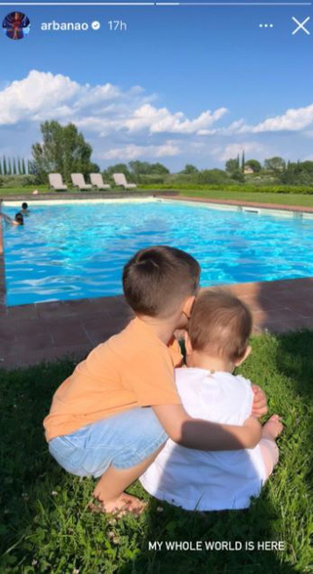 Pak orë para ceremonisë martesore, Arbana ka ndarë një foto të dy djemtë e saj të cilët shihen buzë pishinës në një vilë në Itali.