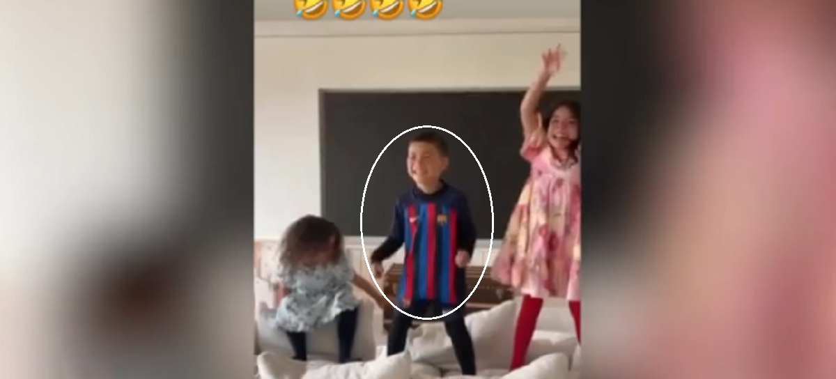 Partnerja e Cristianos ka ndarë një histori ku Alana Martina, Eva dhe Mateo shihen duke bërë një koreografi kërcimi në një nga divanet e shtëpisë së familjes. Gjëja vërtet befasuese është të shohësh fëmijët më të vegjël të futbollistit të veshur me fanellën e rivalit të përjetshëm të Real Madridit. Pra, të Barcelonës.