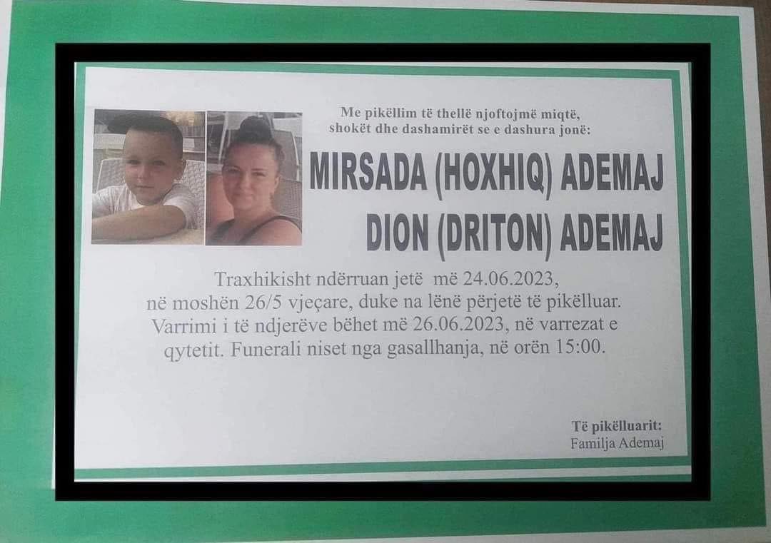 KOSOVË- Një ngjarje tragjike ndodhi gjatë mbrëmjes së kaluar në Pejë. Nënë e bir, Mirsada Ademaj dhe Dion Ademaj, humbën jetën pasi banesa e tyre u përmbyt nga reshjet e dendura të shiut.