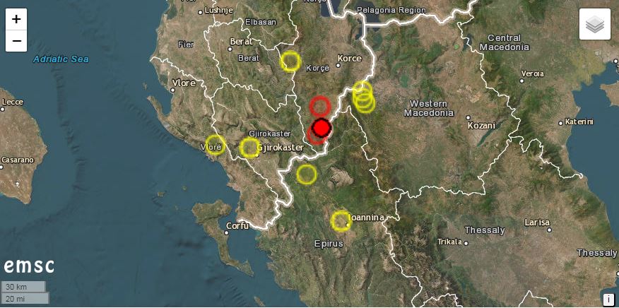 Epiqendra e tërmetit ishte në afërsi të kufirit me Greqinë, 10 km larg Ersekës.