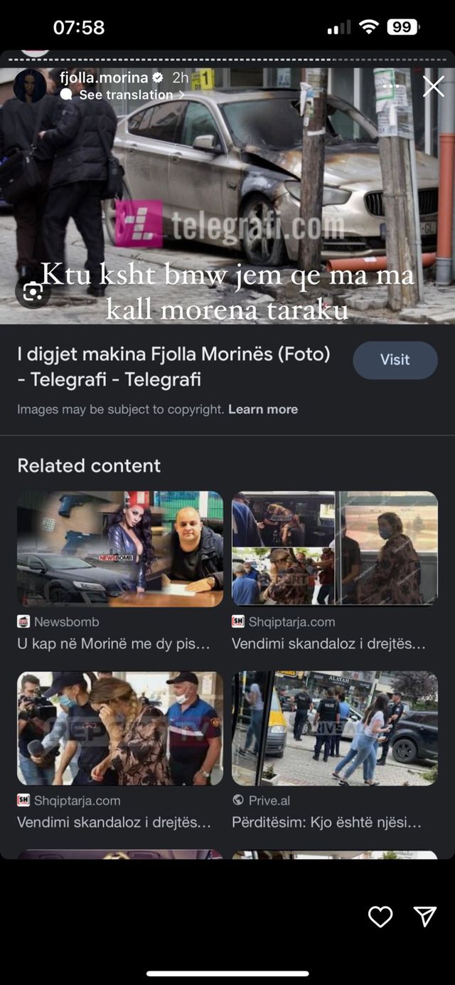 Sikur mos të mjaftonte kjo, ajo ka akuzuar Morena Tarakun se i ka djegur makinën vite më parë, akuzon Stresin dhe Juliana Nurën si krim të organizuar.