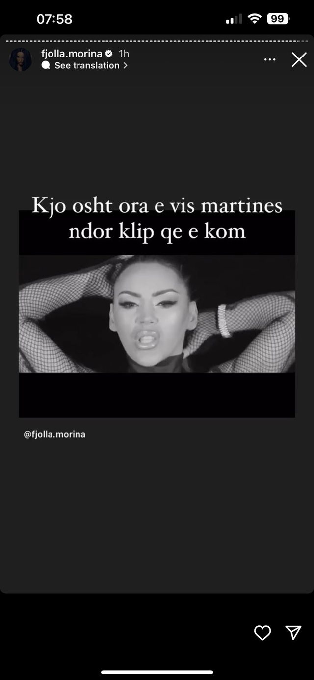 Më tej, ajo nxjerr një sekuencë të një klipi të saj, ku tregon se ora që mban aty është e Vis Martinajt.