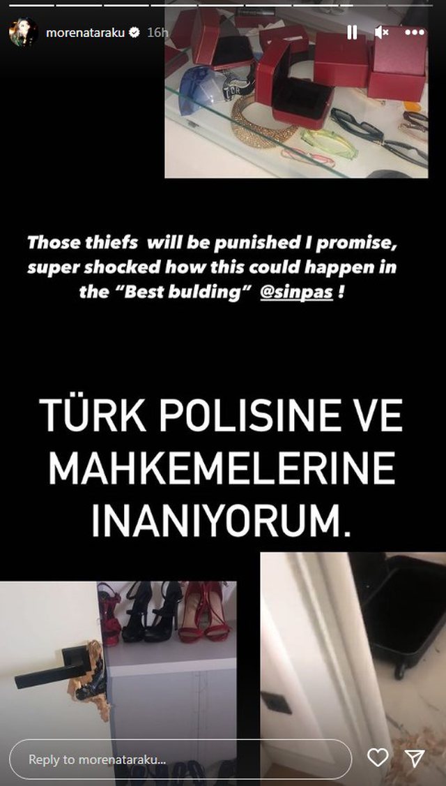 Lajmin e ka bërë të ditur vetë Morena me një postim në Instastory ku tregon edhe kutitë bosh të bizhuterive të shtrenjta.
