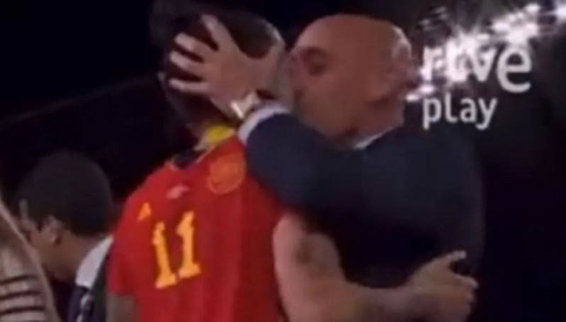 Kur takoi Jenny Hermoso, një nga lojtaret më të mira të skuadrës, e përqafoi dhe e puthi në buzë! Lojtarja u befasua dhe deklaroi: "Uh…po, nuk më pëlqeu".