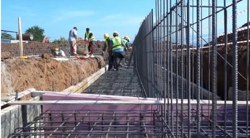 Por duket se ky ritual nuk ndiqet vetëm nga njerëzit e thjeshtë, por praktikohet edhe në kantierët “gjigandë” të ndërtimit në vend. Siç duket edhe në këtë foto, shkëputur në një video e shpërndarë në Facebook nga Ministria e Infrastrukturës, shfaqet një kurban në themelet e godinës së re të një institucioni.
