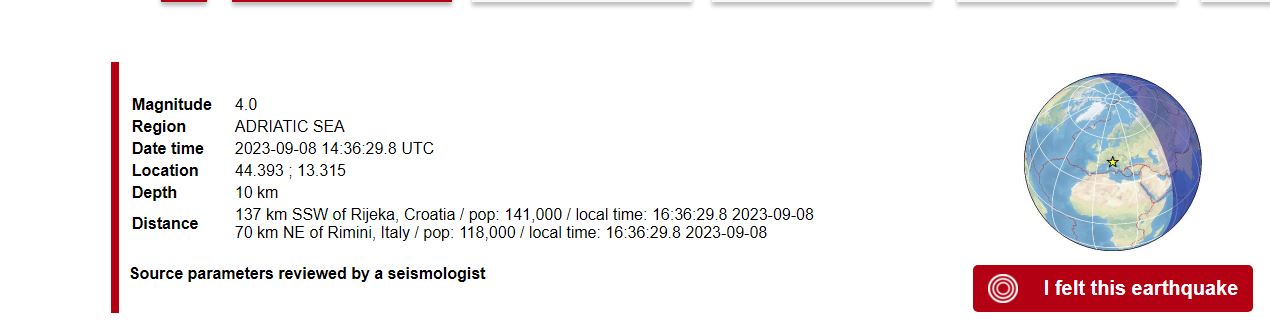Një tërmet me magnitudë 4 u regjistrua në orën 16:30 me orën italiane në zonën detare pranë qytetit të Ankonës, në Italinë qendrore.