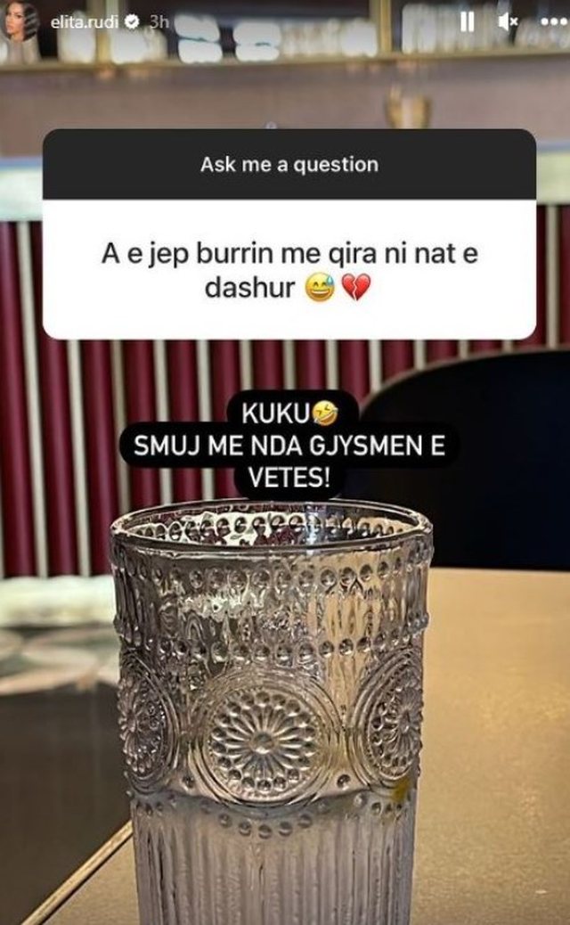 “A e jep burrin me qira një natë e dashur?”, e ka pyetur një ndjekëse, ndërkohë Elita u përgjigj:“Kuku s’mundem me nda gjysmën e vetes”.