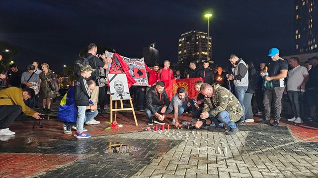 TIRANË- Qindra qytetarë u mblodh/n këtë mbrëmje në sheshin ‘Nënë Tereza’ në Tiranë për të kryer homazhe në nder të efektivit të vrarë nga serbët në Kosovë, Afrim Bunjaku. Qytetarër mbanin flamuj kombëtarë, flamuj të UÇK dhe banderola të ndryshme ndërkohë që kanë ndezur qirinj.