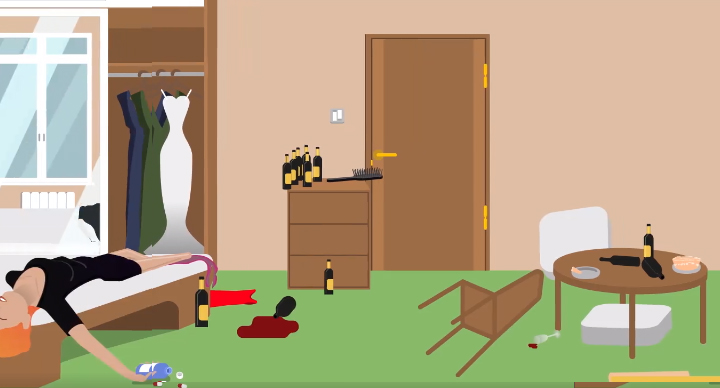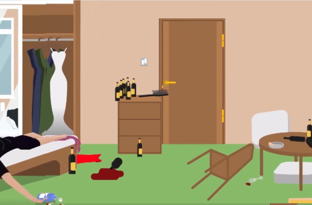 Në foton më poshtë shohim një imazh, ku dallohet një grua e vdekur në një dhomë, e cila është me kokë poshtë, ndërsa i vetmi informacion që na jepet është se dhoma është në katin e 8-të të një hoteli.