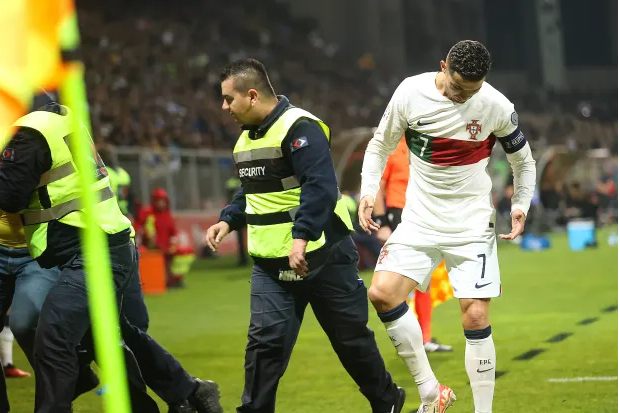 Një incident i panevojshëm i ka ndodhur kapitenit të Portugalisë, Cristiano Ronaldo, gjatë fitores 5-0 të ekipit të tij ndaj Bosnje dhe Hercegovinës në stadiumin Bilino Polje të Zenicës të hënën.