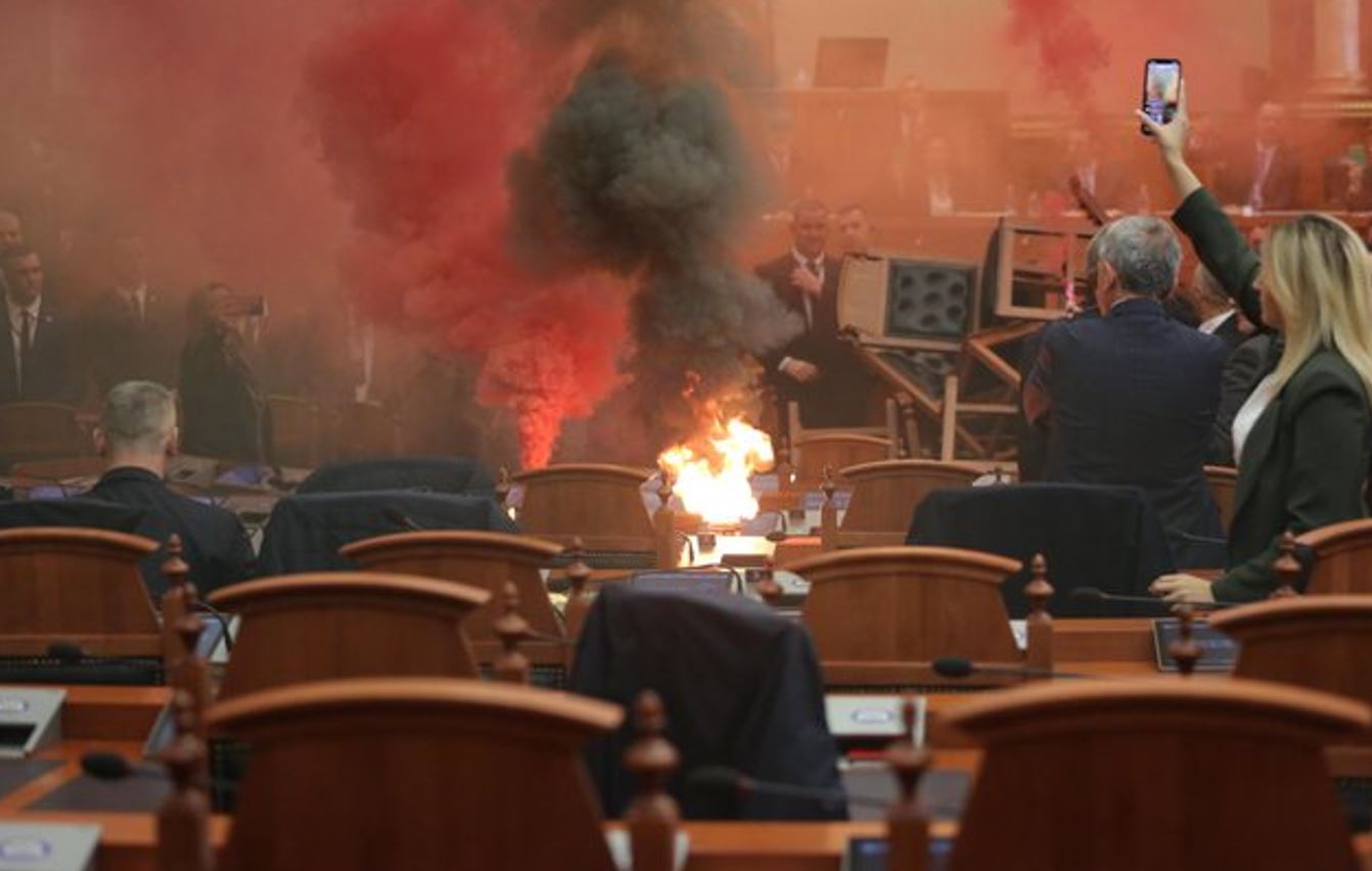 Kjo solli përjashtimin e Flamur Nokës nga seanca, dhe mbylljen e menjëhershme të seancës së sotme parlamentare. Një situatë alarmante u krijua për pak çaste për shkak të zjarrit që nisi në Kuvend, pas tymueseve që u hodhën nga opozita. Garda ndërhyri në kohë duke e shuar atë.