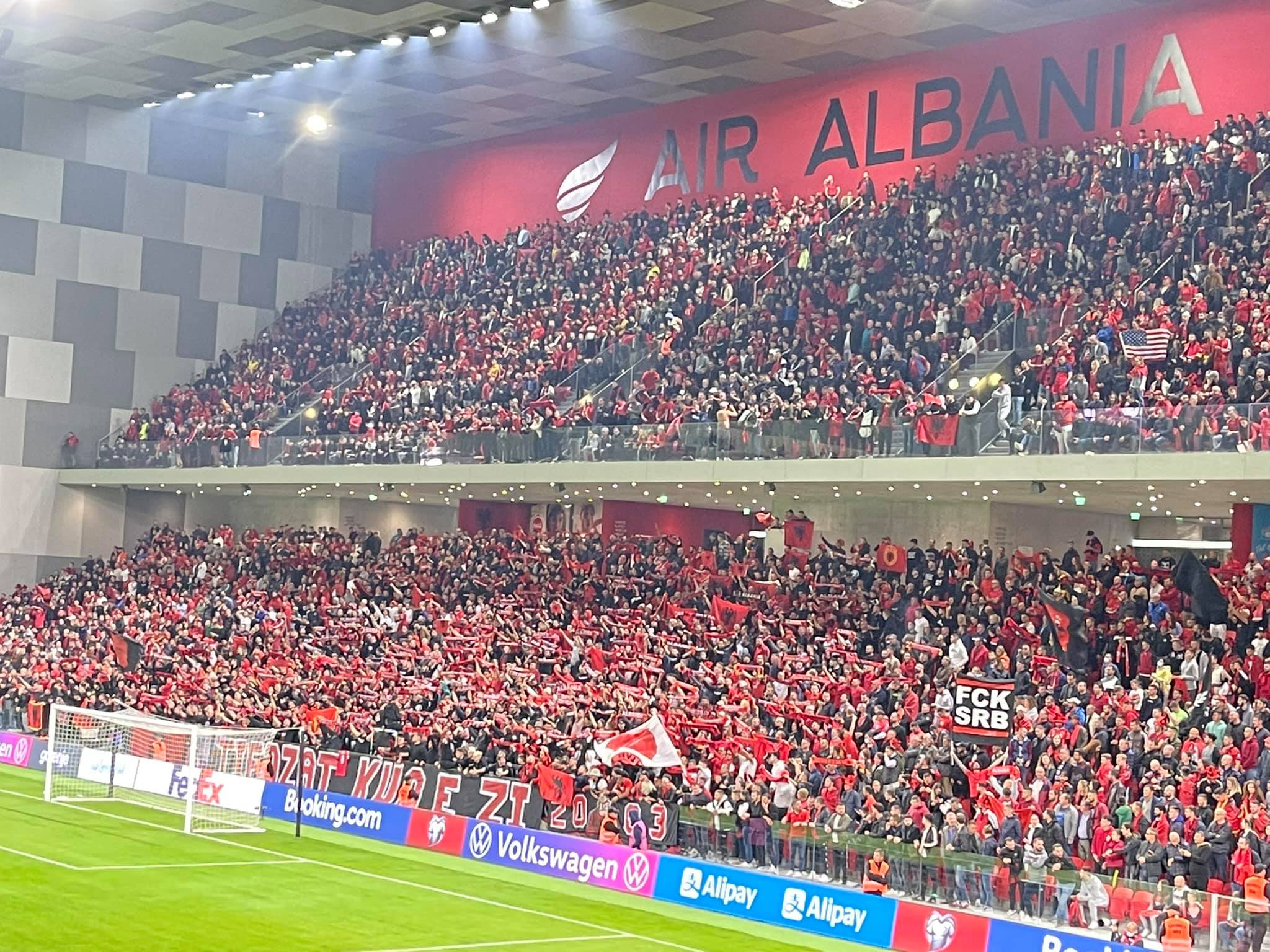 Një foto ka qarkulluar së fundmi në rrjet ku shihet një pankartë gjigande me shkrimin “O sa mirë me qenë shqiptar" "Tifozat kuq e zi 2003-2023".