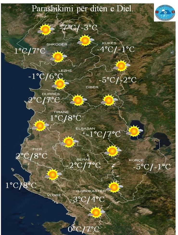 Dita e diel parashikohet të ketë mot kryesisht të kthjellët, por të ftohtë.
