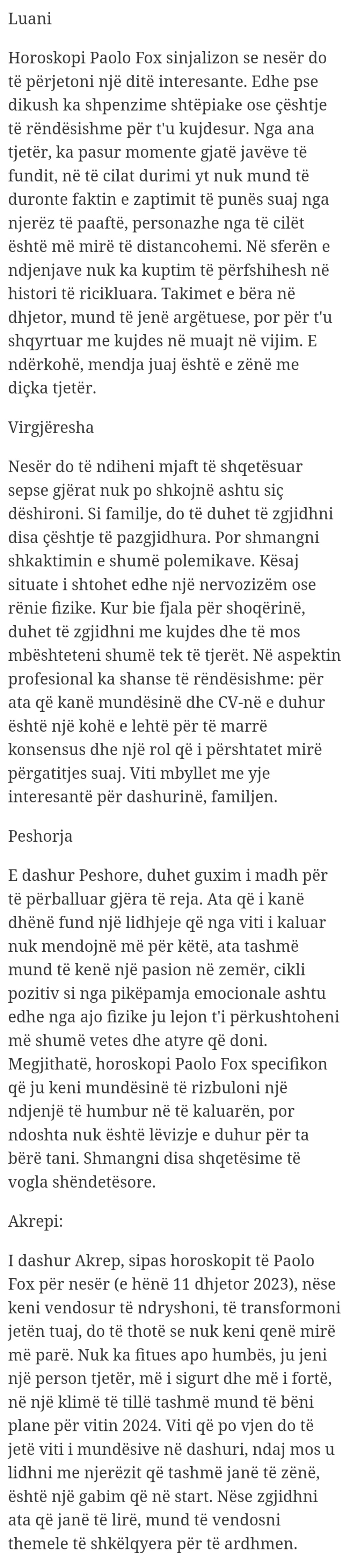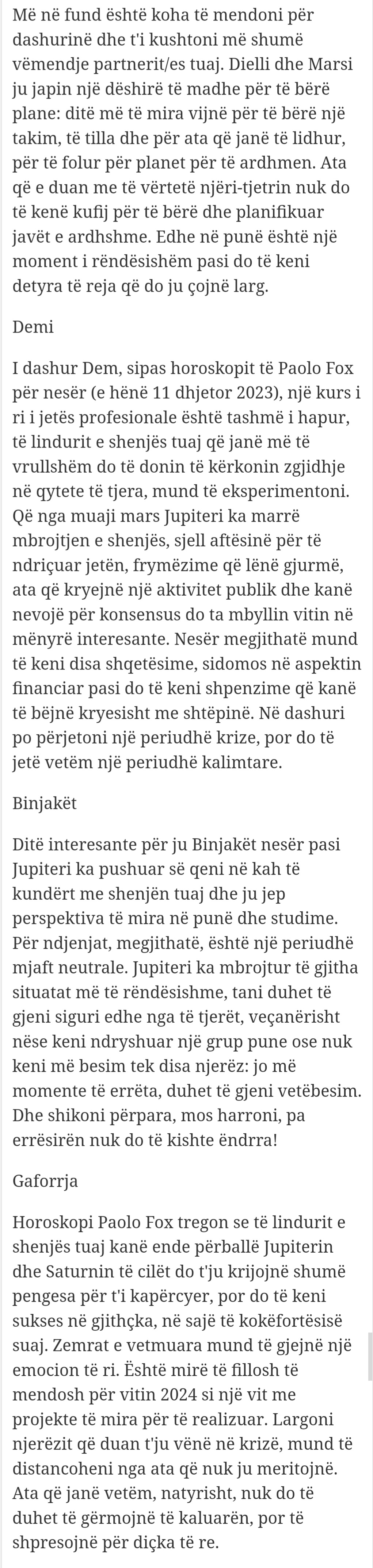 Ja parashikimet e horoskopit për nesër, e hënë 11 Dhjetor 2023 shenjë pas shenje nga astrologu Paolo Fox, përkthyer nga noa.al!